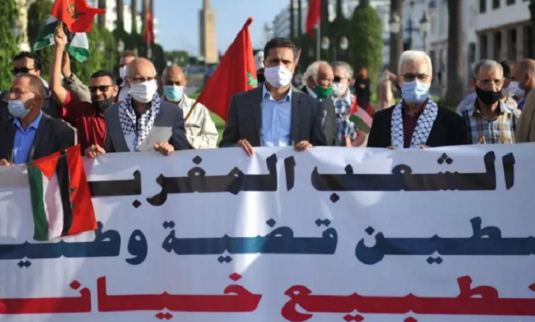 تحركت أكثر من 30 مدينة في المغرب الأقصى، منذ يوم السبت المنقضي، ضدّ اتّفاقية التطبيع، التي وقعتها المغرب قبل عامين (22 ديسمبر2020)، وذلك في سياق التضامن مع الشعب الفلسطيني.