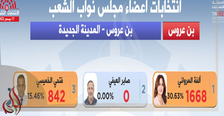 أعلن رئيس الهيئة العليا المستقلة للانتخابات، فاروق بوعسكر، عن فوز النائب الجديد بالبرلمان، صابر العيفي عن دائرة المدينة الجديدة بولاية بن عروس..
