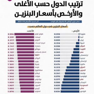 الدول الأغلى والأرخص في أسعار البنزين… تونس السادسة عربيا (إنفوغرافيك)