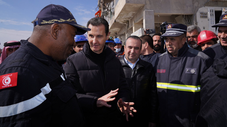 وإلتقى بشار الأسد، بعدد من أفراد فرق البحث والإنقاذ التونسية والجزائرية، التي تعمل على إنقاذ ضحايا الزلزال المدمّر، الذي ضرب مناطق في سوريا وتركيا يوم الإثنين الماضي.