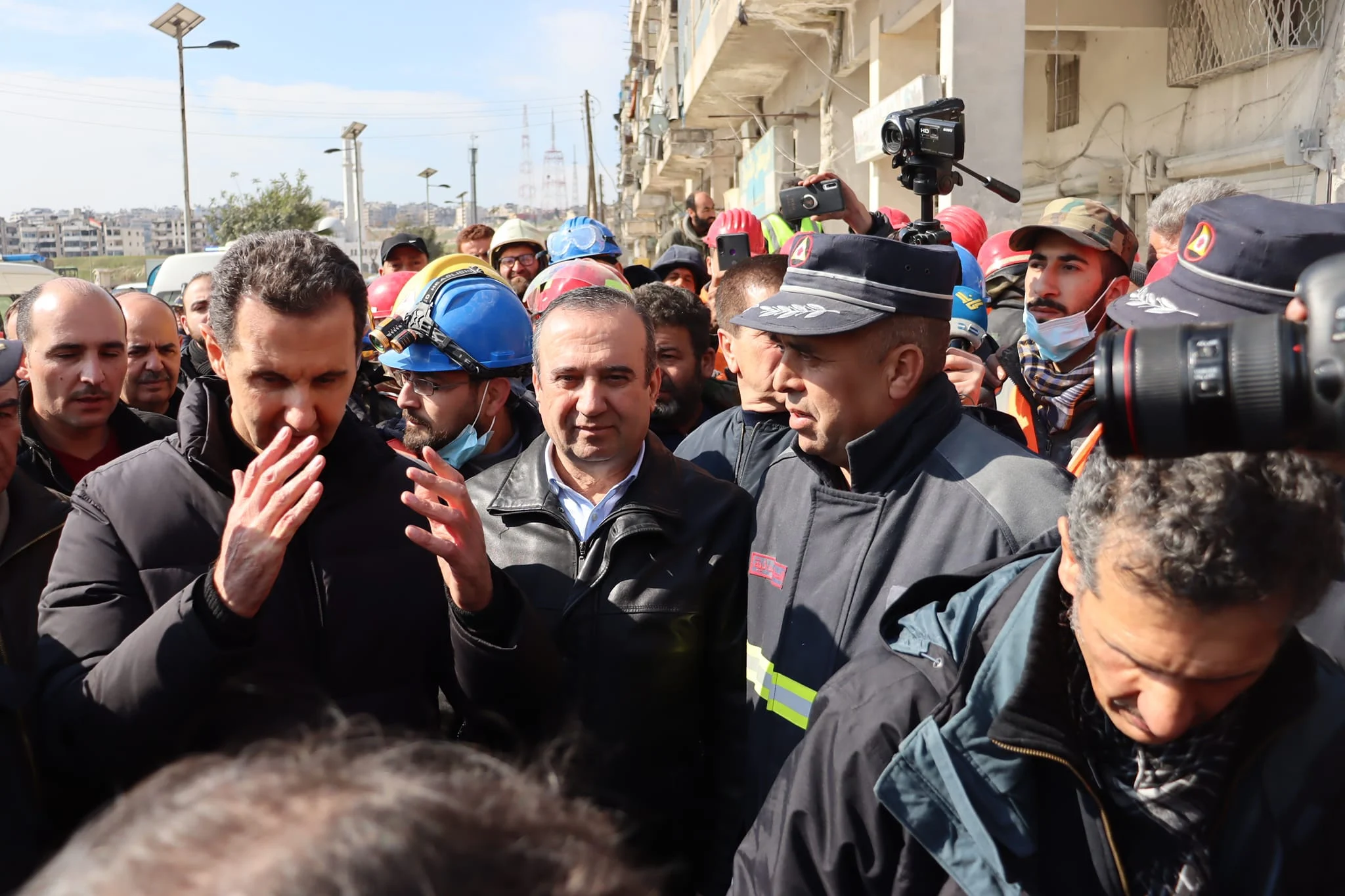 زار الرئيس السوري، بشار الأسد، اليوم الجمعة، موقعاً تعمل فيه فرق الإنقاذ على رفع الأنقاض والدمار، لإنتشال المصابين والضحايا بـ “حي المشارقة” بمدينة حلب، إثر الزلزال الذي ضرب سوريا.