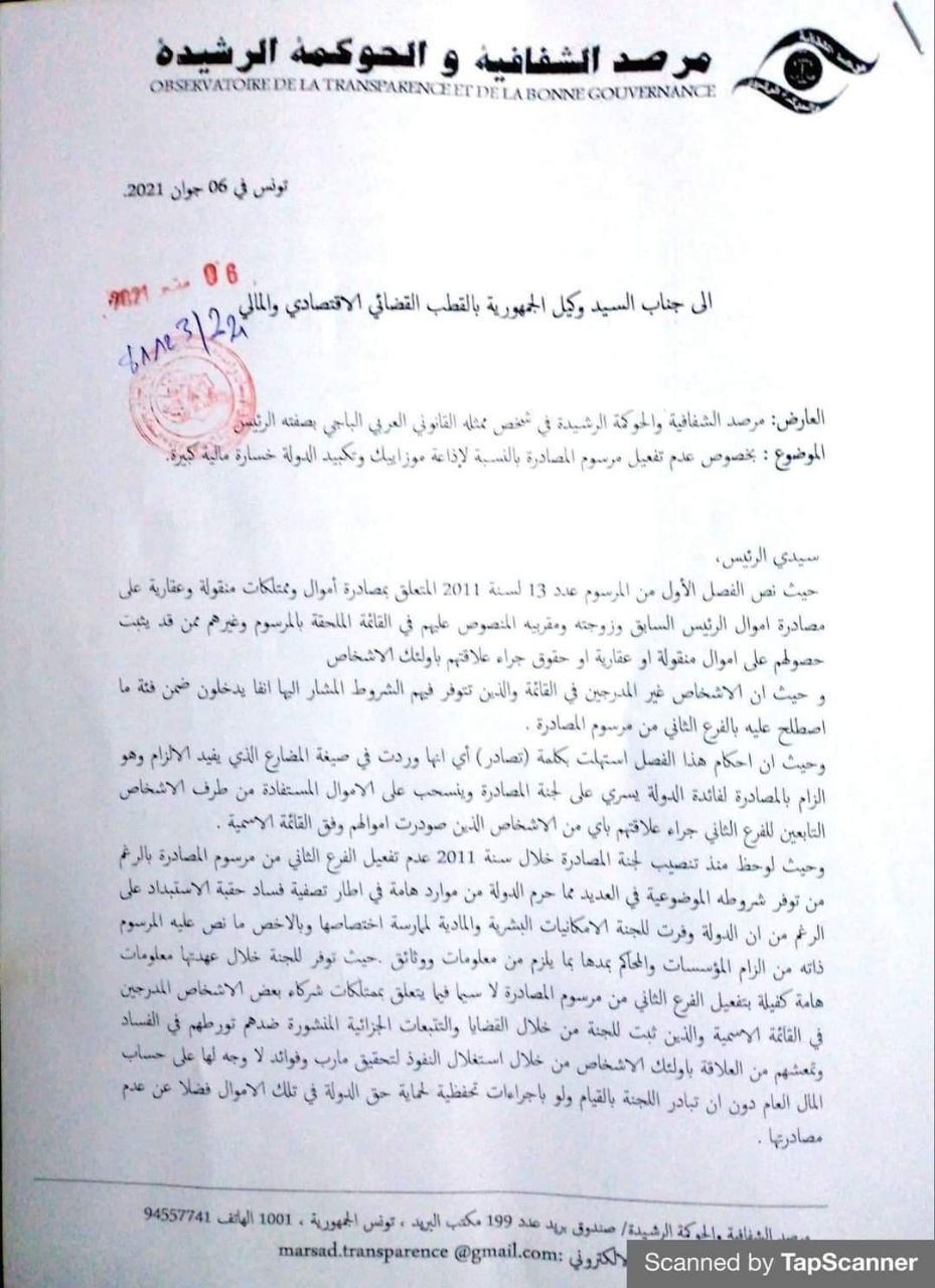 وقد توجّه “مرصد الشفافية”، إلى النيابة العمومية من أجل “فتح بحث تحقيقي حول ملف عدم مصادرة إذاعة تمّ تأسيسها بأموال مسروقة من خزينة الشعب التونسي، وحرمان خزينة الدولة من مواردها”.
