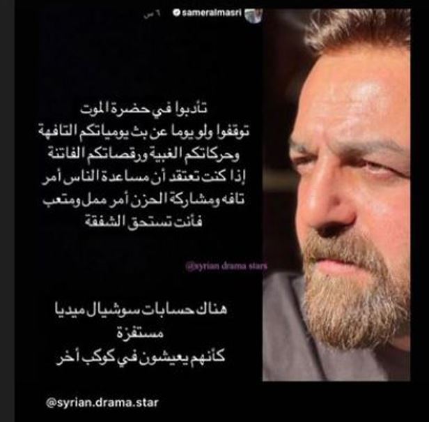 ممثل سوري للمشاهير: توقّفوا ولو يوما عن بثّ يومياتكم “التافهة” !