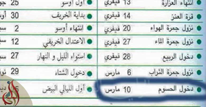 تبدأ اليوم 10 مارس 2023، “فترة الحسوم”، وهي فترة من فترات السّنة، حسب التّقويم الفلاحي.