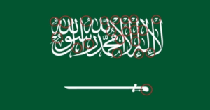 ويتكون العلم السعودي الأخضر بعرض يساوي ثلثي طوله، وسيف مسلول في أسفله، وشهادة المسلمين “لا إله إلا الله محمد رسول الله” باللون الأبيض مكتوبة بخط الثلث.