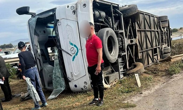 انقلبت حافلة مدرسية اليوم، الأحد 30 أفريل 2023، على مستوى النقطة الكيلومترية عدد 55 بالطريق السريعة في اتجاه تونس، في مستوى محوّل براكة الساحل بالحمامات..