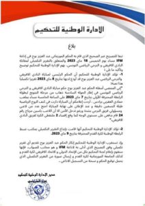 كما استغربت الإدارة الوطنية للتحكيم، إنكار الحكم عبد العزيز بوح تقديم أي تقرير تكميلي وفق التصريح الذي أدلى به لإحدى الإذاعات، معتبرة أنّه “مجانب للصواب”.