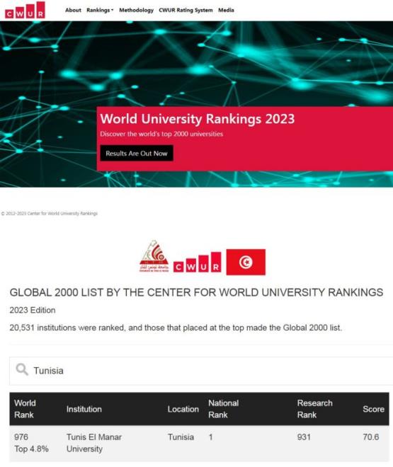 تصنيف مركز الجامعات العالمية: أين حلّت جامعة “تونس المنار” ؟