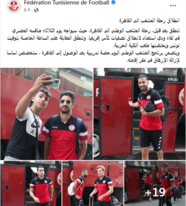 وصل المنتخب الوطني التونسي، ظهر اليوم الأحد 10 سبتمبر 2023، إلى القاهرة، أين يلعب بعد غد الثلاثاء، ودّيًا، مع نظيره المصري، ضمن تحضيرات المنتخبين لكأس إفريقيا / الكوت ديفوار 2024.