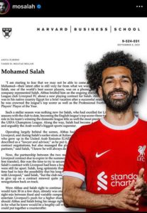 وظهر محمد صلاح على غلاف مجلة كلية “Harvard Business School” المرموقة في عالم المال والأعمال والتابعة لجامعة هارفارد، ليعيد نشره عبر حساباته على مواقع التواصل الاجتماعي.