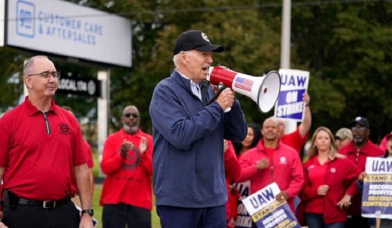 بايدن ينضم لإضراب عمال صناعة السيارات.. في مشهد تاريخي غير مسبوق..
