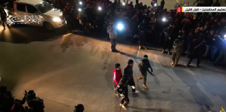 ذكرت تقارير إعلامية الآن، أن عملية تسليم الدفعة الخامسة من المحتجزين الإسرائيليين في قطاع غزة، تمت اليوم بحضور عسكري مشترك بين كتائب عز الدين القسام (الجناح العسكري لحركة المقاومة الإسلامية / حماس)، و(وسرايا القدس / الجناح العسكري لحركة الجهاد الإسلامي).