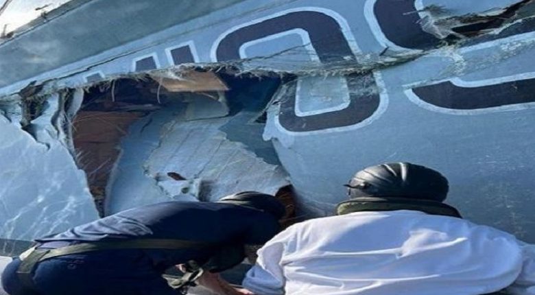 وأدى الحادث إلى إحداث ثقب كبير في هيكل السفينة المصنوع من “الفايبر جلاس”، وأحدث أضرارا داخلية دون وقوع إصابات.