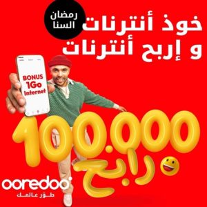 ولمزيد من المعلومات حول شروط المشاركة والجوائز، يمكن زيارة الموقع الإلكتروني www.Ooredoo.tn، أو زيارة أقرب محل تجاري Ooredoo..