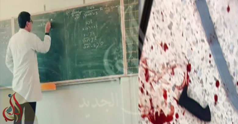 وقد قام التلميذ بـ “طعن” أستاذه، عندما كان ملتفتا إلى “السبورة”، ممّا تسبب له في جروح طفيفة.