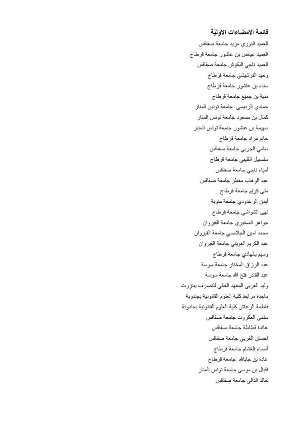 طالب أساتذة قانون تونسيون بمختلف إختصاصاتهم ورتبهم ومؤسساتهم، بـ “عدم المساس بمكتسبات حقوق الإنسان وحرياته المضمونة دستوريا”.