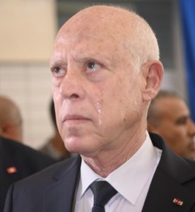 وقد ظهر قيس سعيد، في إحدى الصور المنشورة، باكيا، بسبب حادثة “حجب العلم التي جدت بمسبح رادس”.
