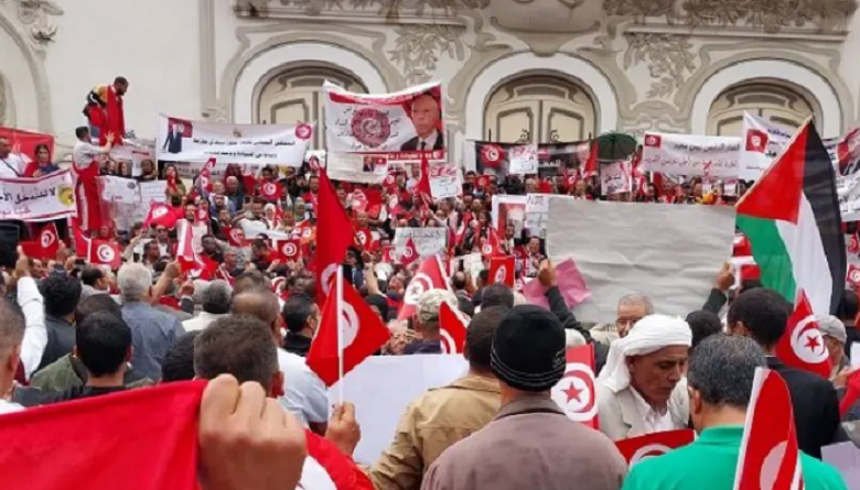 تجمع مئات من أنصار الرئيس قيس سعيّد، منذ صباح اليوم الأحد 19 ماي 2024، على مستوى شارع الحبيب بورقيبة بالعاصمة، وانطلاقا من المسرح البلدي، حاملين أعلام تونس، وصور قيس سعيّد..