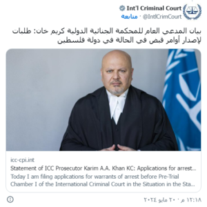 وأكد المدعي العام لـ “المحكمة الجنائية الدولية”، أنه يسعى لإصدار مذكرات اعتقال بحق نتنياهو ورئيس حركة “حماس” في غزة يحيى السنوار، بتهم ارتكاب جرائم حرب.