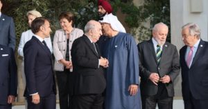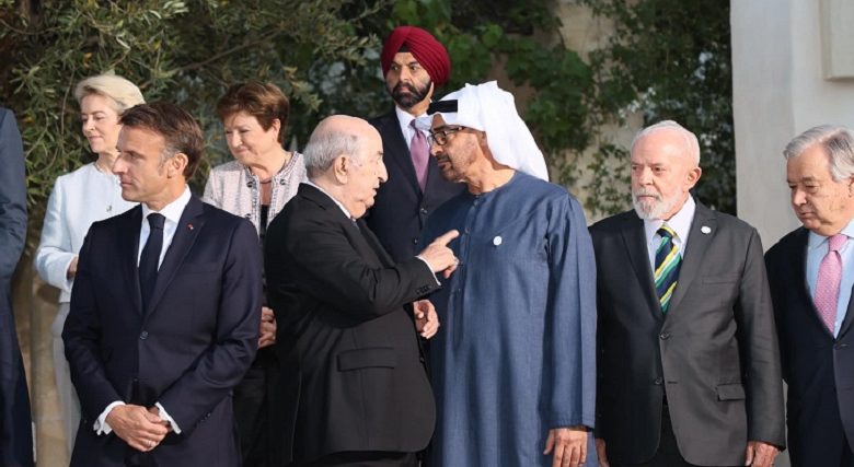 وأظهرت صور ولقطات، أن الرئيس الجزائري كان جالسا في طاولة الاجتماعات التي احتضنتها باري الإيطالية، عندما قدم إليه محمد بن زايد مصافحا، فبادله تبون بالتحية، وتبع ذلك، حديث ثان بين الرجلين وقوفا على هامش الاستعداد لأخذ صورة تذكارية جماعية للقادة الحاضرين في اجتماع مجموعة السبع، تخللته ابتسامات وتعابير جسدية، بينها تبون وهو يضع إصبعه على صدر محمد بن زايد.