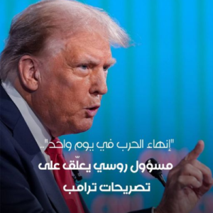 يذكر أنّ ترامب قال الأسبوع الماضي خلال مناظرة رئاسية مع الرئيس، جو بايدن، مرشح الحزب الديمقراطي، إنه “سيصل إلى تسوية للحرب، حين انتخابه رئيسا”، وأضاف: “قبل أن أتسلم المنصب في 20 جانفي. ستكون الحرب قد انتهت… وسأسوي الأمر بسرعة قبل أن أتسلم المنصب”.
