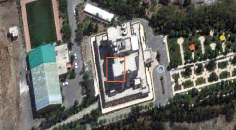 وبحسب تحليل المنطقة، يقع المبنى على إحدى التلال على الحافة الشمالية لطهران، عند سفح جبال البرز، ولا توجد مبان سكنية أخرى في المنطقة المجاورة مباشرة للمجمع.