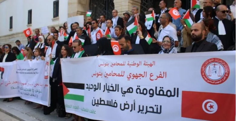 نفّذ محامو تونس، وقفة احتجاجية بشارع الحبيب بورقيبة، تنديدا بموجة الاغتيالات التي طالت مؤخرا رموز المقاومة الفلسطينية.