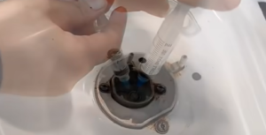 * فرك قضبان الغاز المنقوعة في الحوض باستخدام فرشاة أسنان أو إسفنجة.