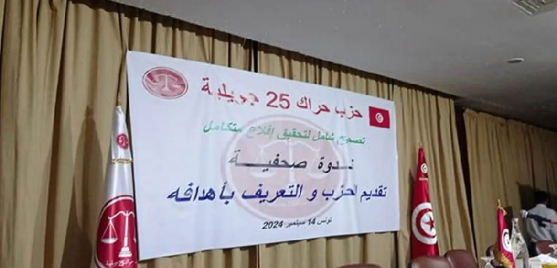 تمّ اليوم السبت، الإعلان عن تأسيس حزب “حراك 25 جويلية”، وذلك خلال مؤتمر صحفي تمّ تنظيمه بأحد النزل بالعاصمة، لتقديم الحزب والتعريف بأهدافه.