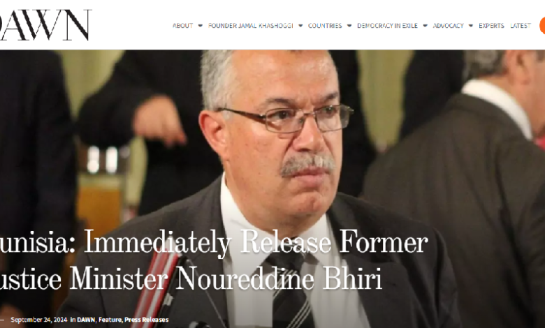 دعت منظمة “DAWN” الأمريكية، الحكومة التونسية إلى “إنهاء سجنها التعسفي وسوء معاملتها لوزير العدل السابق نور الدين البحيري فورًا”، مشيرة إلى أن “حياته في خطر بسبب الإهمال الطبي، والإصابات التي تعرض لها على يد قوات الأمن”، وفق زعم المنظمة.