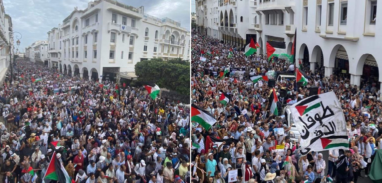 وبشكل متواصل منذ أكثر من عام، تشهد العديد من المدن المغربية لا سيما العاصمة الرباط، مظاهرات تضامنية مع قطاع غزة، يطالب فيها المشاركون بوقف الإبادة الإسرائيلية ورفع الحصار وإدخال المساعدات الإنسانية، وإنهاء اتفاقية التطبيع مع دولة الاحتلال الإسرائيلي.