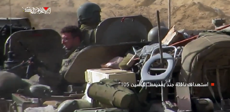 وتضمنت اللقطات استهداف مقاتلي “القسام” جرافتين عسكريتين من نوع “دي 9” بقذيفتي “الياسين 105″، إلى جانب استهداف ناقلتي جند بقذيفتين مضادتين للدروع.