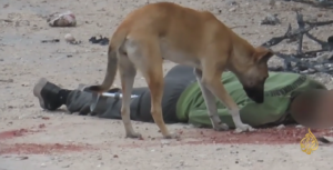 أظهرت مشاهد خاصة بثتها قناة “الجزيرة” اليوم، نهش الكلاب الضالة في المناطق الشمالية من شمال قطاع غزة، لجثامين شهداء ملقاة في الطرقات، وأخرى لم يتبق منها سوى جماجم.