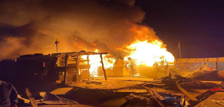 وأظهرت مقاطع مصورة النيران تلتهم عددا من الخيام، بينما كان فلسطينيون يحاولون بوسائل بدائية السيطرة على الحرائق في الموقع المستهدف.