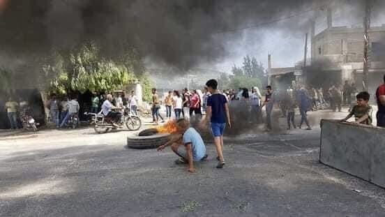 وبحسب مقاطع مصورة، فقد رفع المتظاهرون لافتات تندد بـ”حرق أحد المزارات الدينية في حلب”.