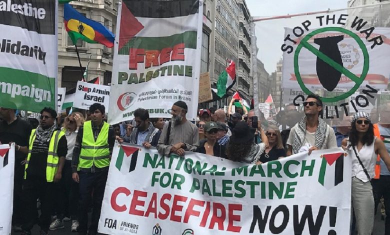 بريطانيا: 150 ألف شخص يتظاهرون تأييدا لغزة.. وضدّ التهجير..