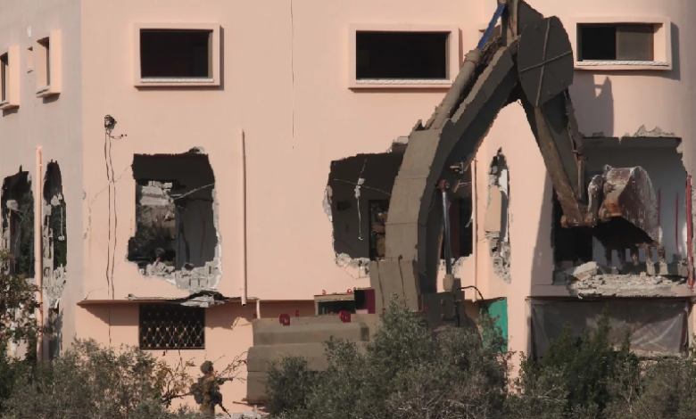 وأظهرت مقاطع مصورة قيام جرافات ضخمة بتدمير المباني وتسويتها بالأرض، وتجريف الطرق وتخريب البنية التحتية، ما فاقم معاناة السكان المدنيين.