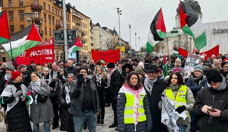 السويد… مئات المتظاهرين يرفضون خطة ترامب للاستيلاء على غزة وتهجير أهلها