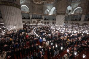 امتلأت مساجد إسطنبول بالمصلين والمعتكفين في ليلة السابع والعشرين من شهر رمضان، حيث تدفقت أعداد غفيرة إلى جوامع المدينة التاريخية من أجل إحياء الليلة.