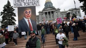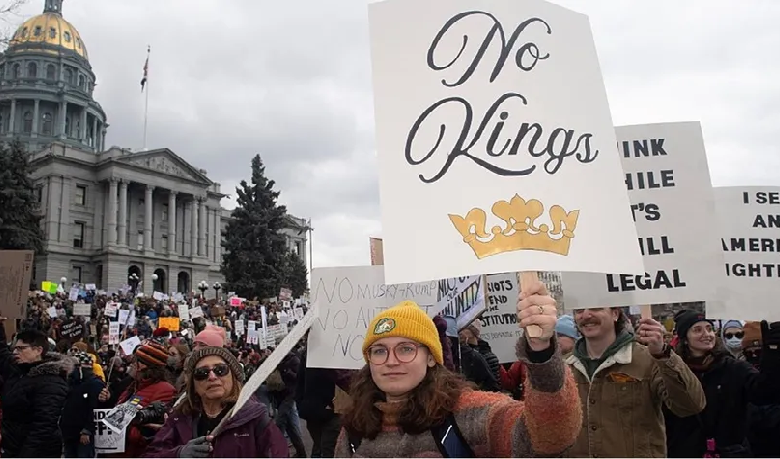 وقال راسكين أمام حشد من الآلاف تجمعوا عند نصب واشنطن التذكاري، حاملين لافتات تندد بالإدارة: “كتب مؤسسونا دستورًا لا يبدأ بعبارة “نحن الديكتاتوريون”، بل تقول ديباجته “نحن الشعب”. وأضاف: “لا أحد من أصحاب الأخلاق يريد ديكتاتورًا يُدمر الاقتصاد”.