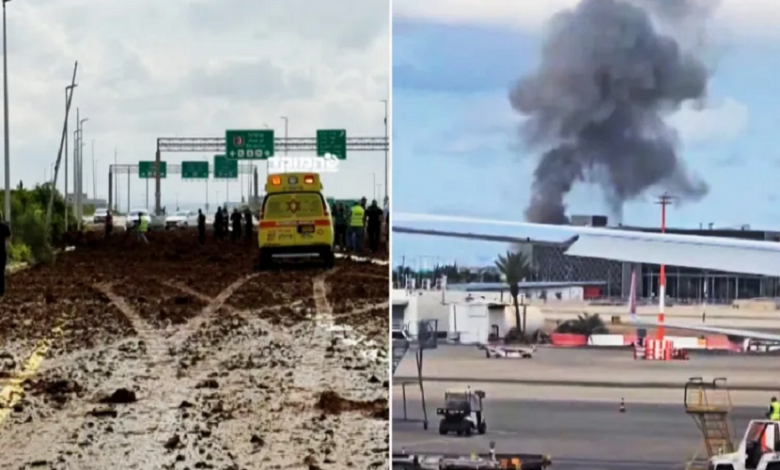 وفي تل أبيب، سقط صاروخ يمني في مطار بن غوريون بعد فشل منظومات الدفاع في التصدي له، في حين أفاد الإسعاف الإسرائيلي بتسجيل عدة إصابات نتيجة الانفجار.