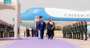 ووصل الرئيس الأمريكي إلى العاصمة السعودية الرياض، الثلاثاء، وكان في مقدمة مستقبليه ولي العهد السعودي، وذلك ضمن محطته الأولى في الشرق الأوسط، والتي تشمل أيضا قطر والإمارات.