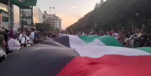تظاهر المئات من التونسيين بالعاصمة مساء أمس السبت، دعما لقافلة “صمود” المحاصرة من قبل سلطات شرق ليبيا، التي يقودها اللواء المتقاعد، خليفة حفتر.