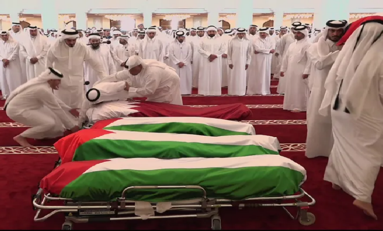 الدم القطري يمتزج بالفلسطيني.. وداع شهداء الدوحة في موكب مهيب