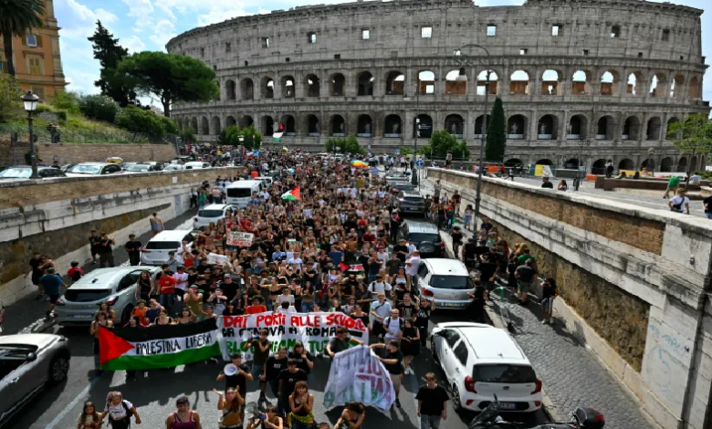 تظاهر عشرات الآلاف في عدد من المدن الإيطالية تلبية لدعوة النقابات العمالية “للتنديد بالإبادة الجماعية في غزة”، والمطالبة بفرض عقوبات اقتصادية على إسرائيل.