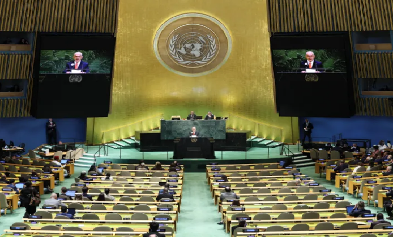 فقد ألقى نتنياهو خطابه أمام الجمعية العامة للأمم المتحدة -اليوم الجمعة- في قاعة شبه فارغة بعد انسحاب معظم الوفود، في موقف احتجاجي ضد نتنياهو وحرب الإبادة في قطاع غزة التي توشك على دخول عامها الثالث.