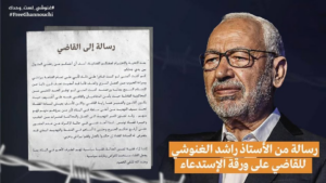 وشدد زعيم حركة النهضة، في رسالته الموجهة إلى القاضي، على “إننا إزاء قضية تمس العدالة، قضية سياسية تهم الطرف الأهم في البلاد، بما يجعل القضاء مستخدما لأغراض وغايات سياسية”.