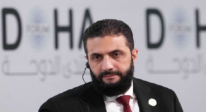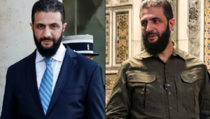 ووجد نفسه فجأة، من قيادة جيب إدلب المتمرّد منذ 2017، في موقع إدارة دولة منهكة بـ14 عاماً من الحرب الأهلية. ففي تسارع استثنائي للتاريخ، تحوّل الجهادي السابق إلى رئيس للدولة، تقول “لوموند”.
