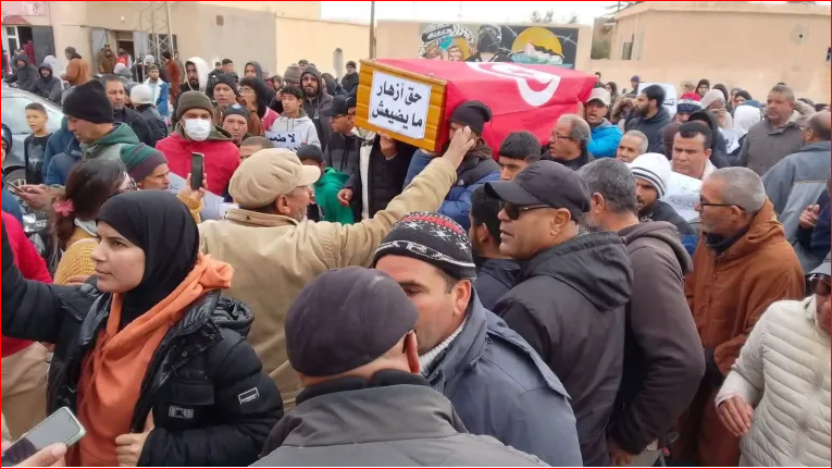 نظم عدد من سكان مدينة الرديف، جنازة رمزية شعبية، للممرضة أزهار عميدي، التي توفيت نتيجة حادث شغلي، بالمستشفى المحلي بالمدينة.