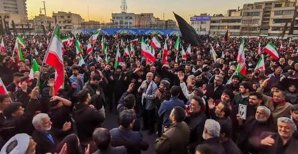 وتشهد طهران توافد حشود غير مسبوقة إلى الساحة المركزية في تظاهرة حاشدة مطالبين بالثأر للمرشد الأعلى علي خامنئي والردّ الفوري والحاسم على الولايات المتحدة وإسرائيل.